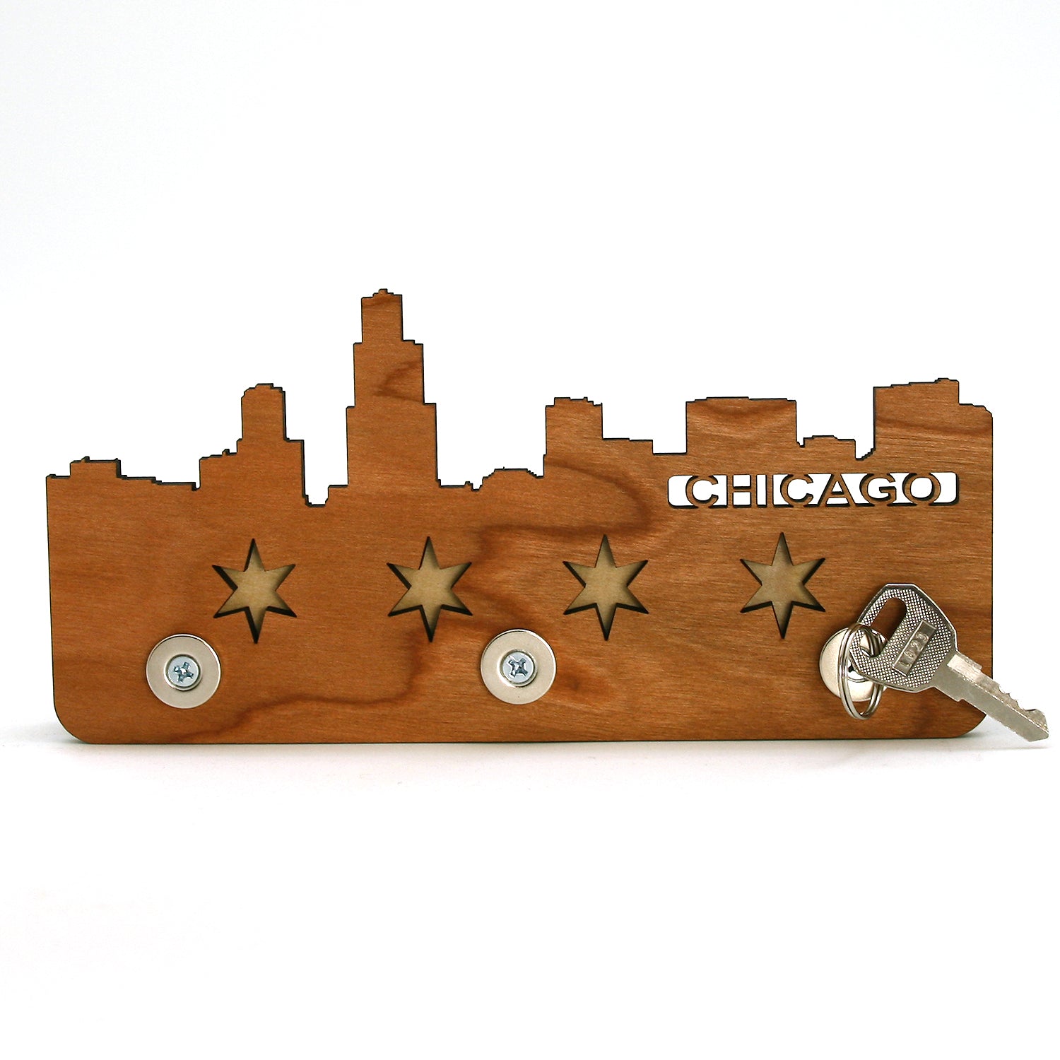 Chicago Skyline Cherry Magnetic Key Rack - 8.25" x 2.25" – City Flag Entryway Organizer